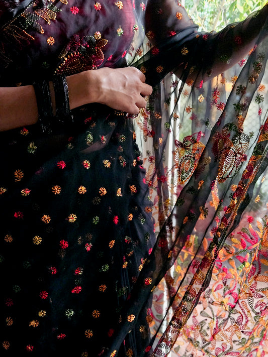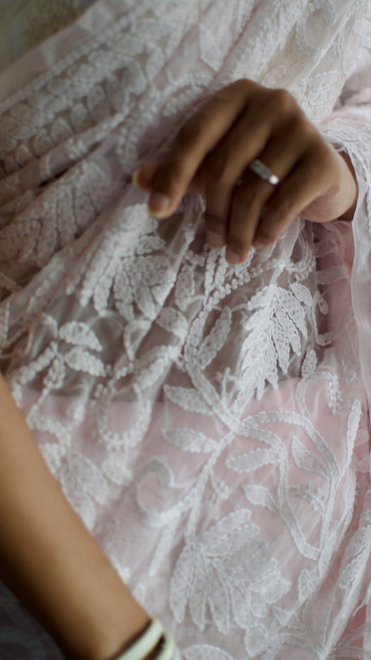 Chikankari, an icon of Indian heritage is a form of royal artwork, practised by artisans of Lucknow. This delicate and artfully done hand embroidery is what studio SY attempts to bring to you in our sarees.